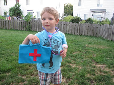 Бабушка прислала в подарок наборчик "доктор". Весь набор был просто в мешок упакован. Пришлось мне придумывать куда весь этот набор пристроить, чтобы всякие градусники-молоточки-фонендоскопы и т.п. не валялись по всему дому в разных углах.