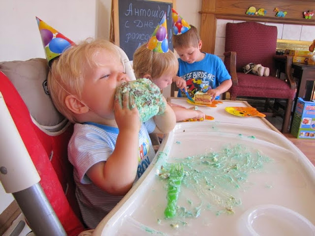 Примерно на таком этапе разделки торта, Антона забрали на отмывание и переодевание :)))
